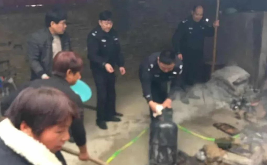 火势越来越大!单凭民警携带的简易灭火设备根本无法靠近起火点,徐阳涛在刘某家找来水管,配合肖向前用水把煤气罐周围的大火扑灭。火势虽然暂时被遏制,但仍有火苗不断从墙角冒出。此时,民警近前查看,发现煤气罐底部已经变形。