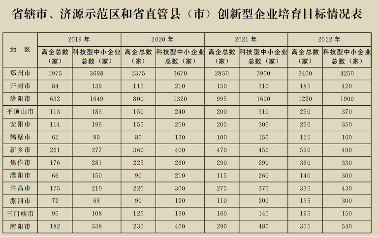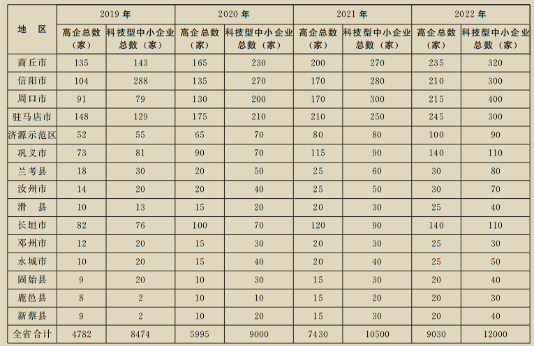 2020年9月21日,河南省科技厅、河南省财政厅等9个厅局联合印发《河南省加快培育创新型企业三年行动计划 (2020~2022年)》(以下简称《行动计划》)提出,要通过扎实推进科技型中小企业评价工作、建立完善科技型中小企业孵化体系、强化科技型中小企业培育服务等政策措施来推动科技型中小企业量质提升。