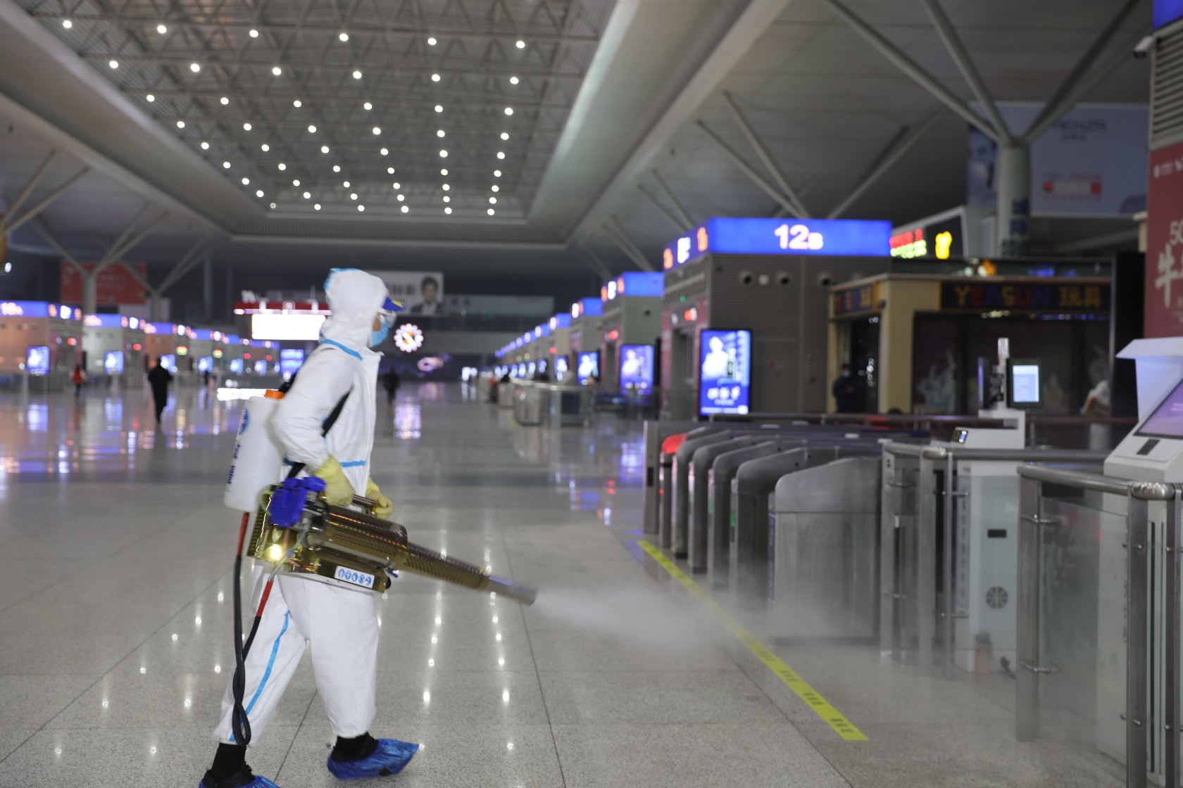 “按照消杀标准,我们每天5次对车站公共区域进行消杀。”中国铁路郑州局集团有限公司郑州站副站长何少杰说。