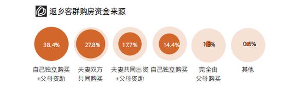 不少90后虽没有80后有钱,但有父母做“后盾”。据数据显示,从购房资金来源看,自己独立购买且需父母部分支持是返乡客群置业的主要形式,在受访者中占比38.4%;其次是夫妻双方共同出资购买,占比27.8%。