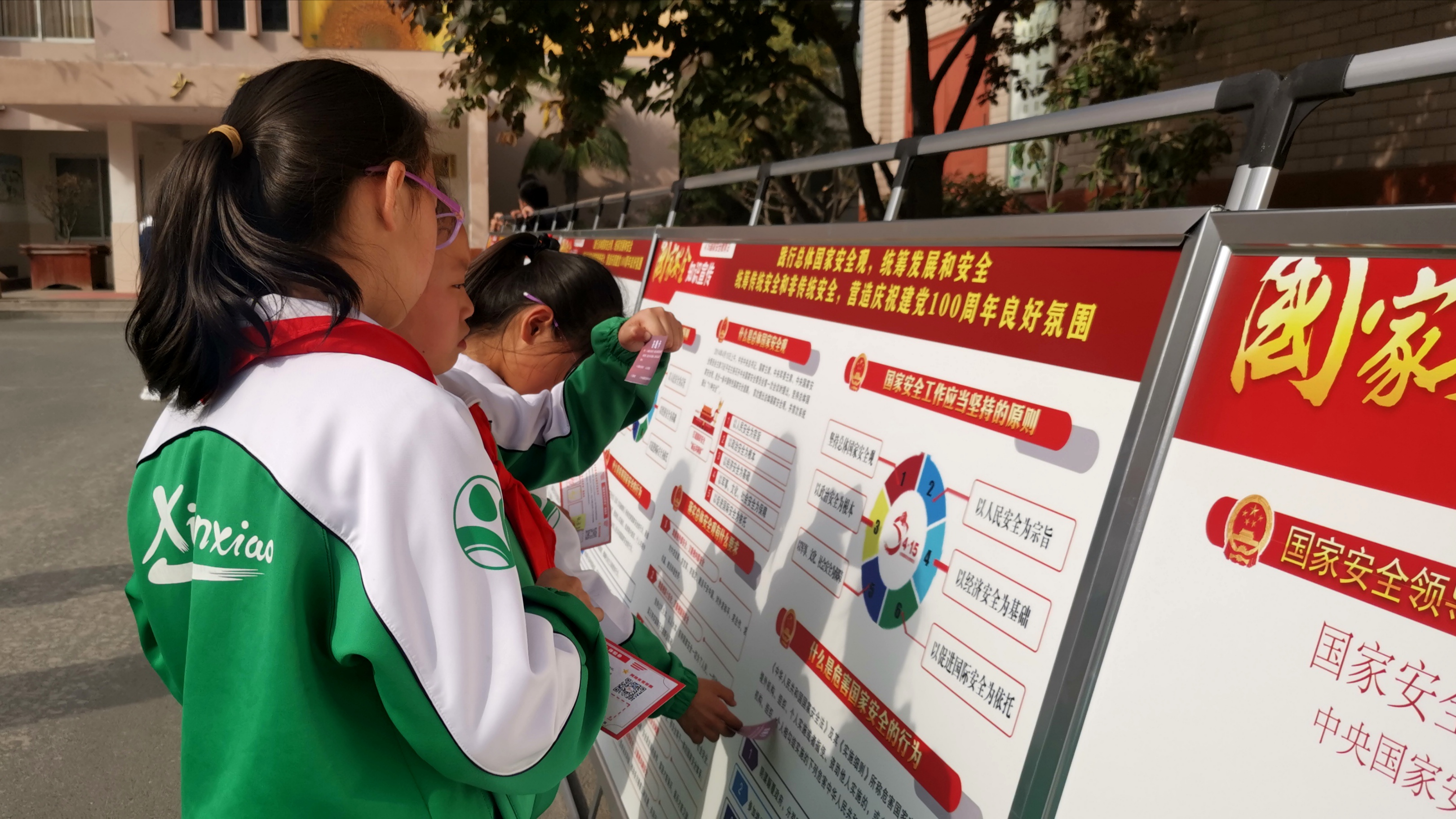 在展板前观看学习国家安全相关知识。