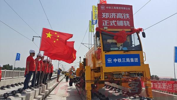 郑济高铁建设动态万众瞩目。为确保郑济高铁建设进度,作为郑济高铁唯一铺轨施工单位的中铁三局线桥公司,提前做好500米长钢轨的运输和存放,成立了行车调度智控指挥中心,引进了牵引力大、模块化程度高、作业效率高的牵引车,正线采用一次铺设跨区间无缝线路,以濮阳端为起点向郑州方向铺轨。