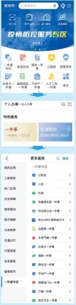 “郑好办”上“一件事专区”,让群众一网通办、一次办成民生事。(手机APP截图)