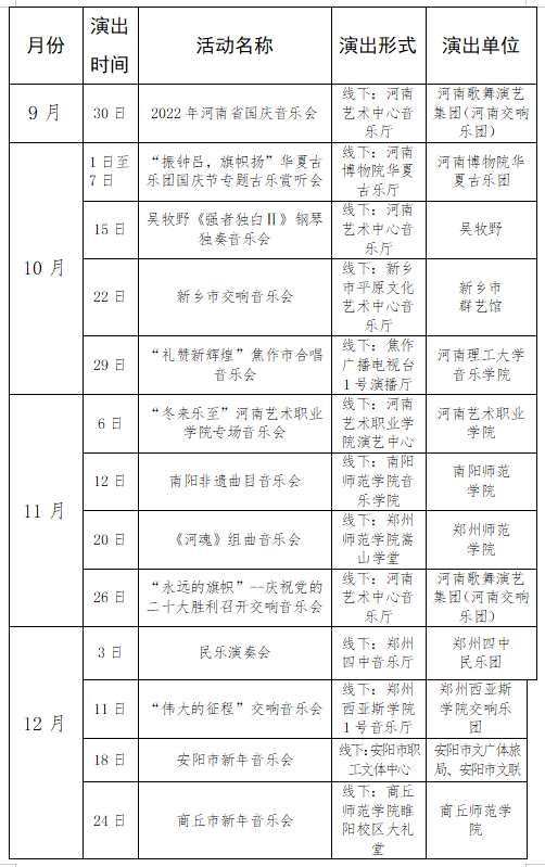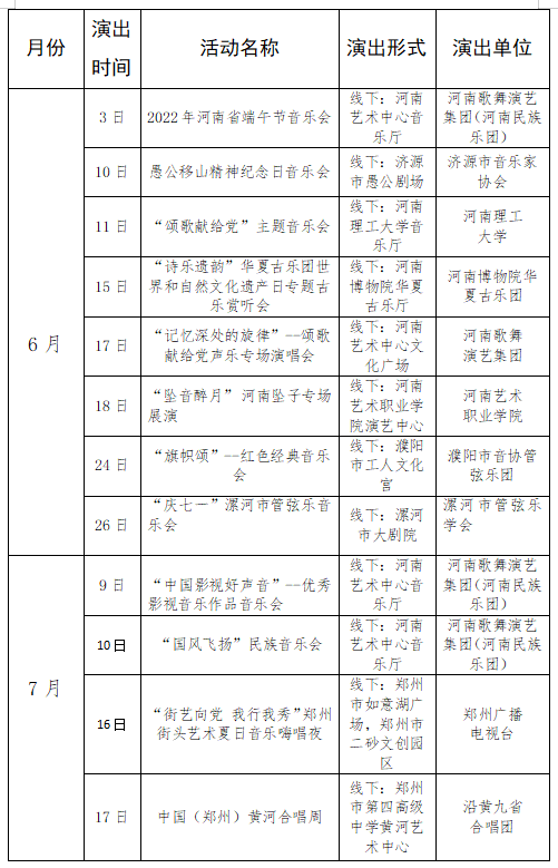 注:“线上演出”主要在“学习强国”河南平台、百姓文化云、文化豫约、县级融媒体中心等平台播出。