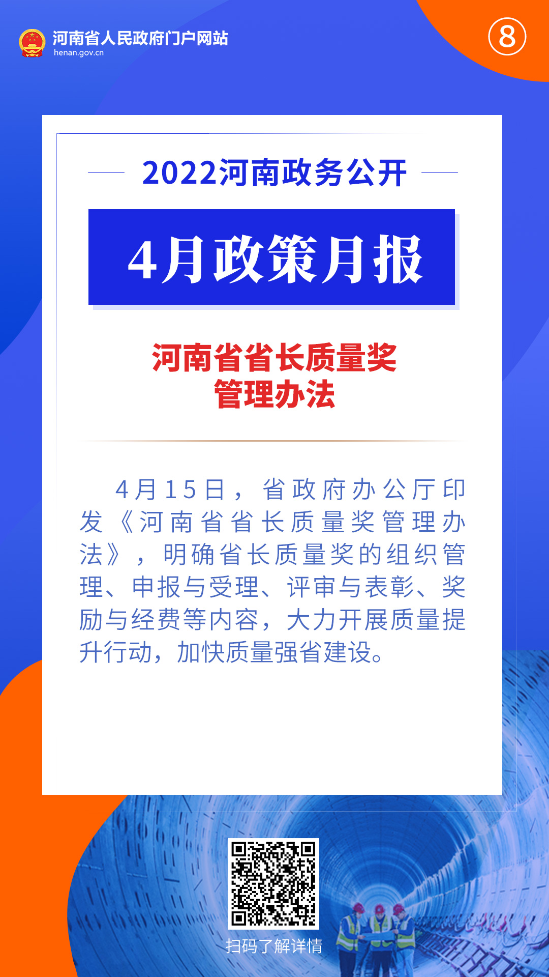 2022年4月,河南省人民政府出台多项重要政策,包括关于河南省肉牛奶牛产业发展行动计划、加快推进智慧岛建设实施方案和支持中原龙子湖智慧岛建设若干政策、河南省“十四五”现代物流业发展规划、河南省省长质量奖管理办法等内容。通过河南政务公开4月政策月报,一起来看详情——