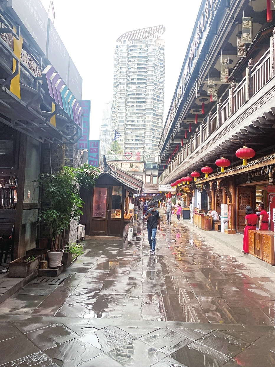 重庆网红景点洪崖洞的街道和商铺记者张晶晶摄影