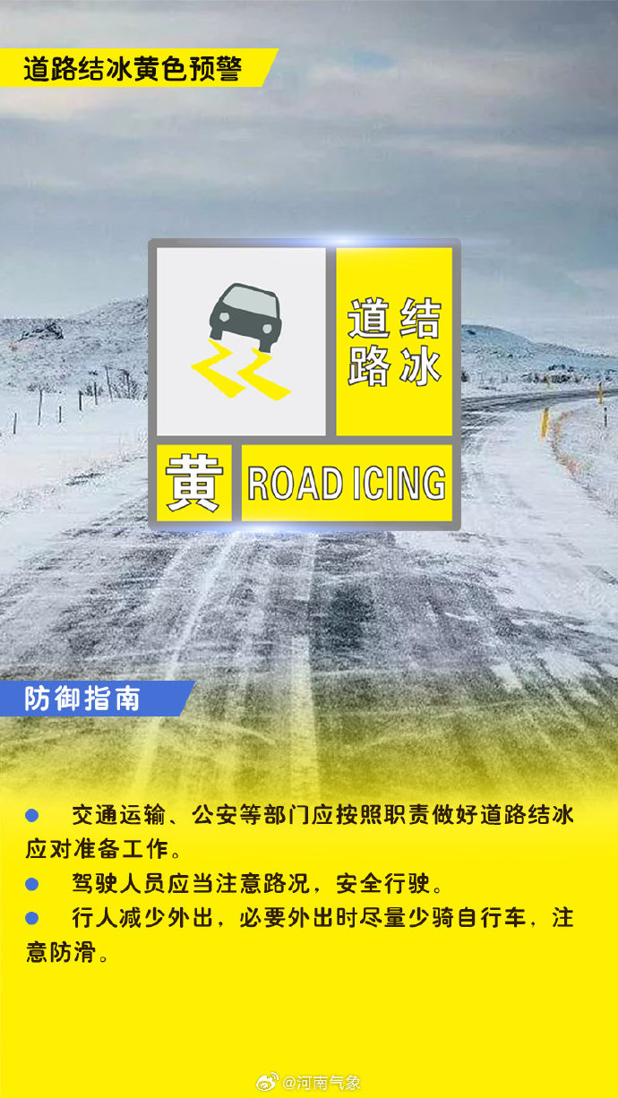郑州发布道路结冰黄色预警