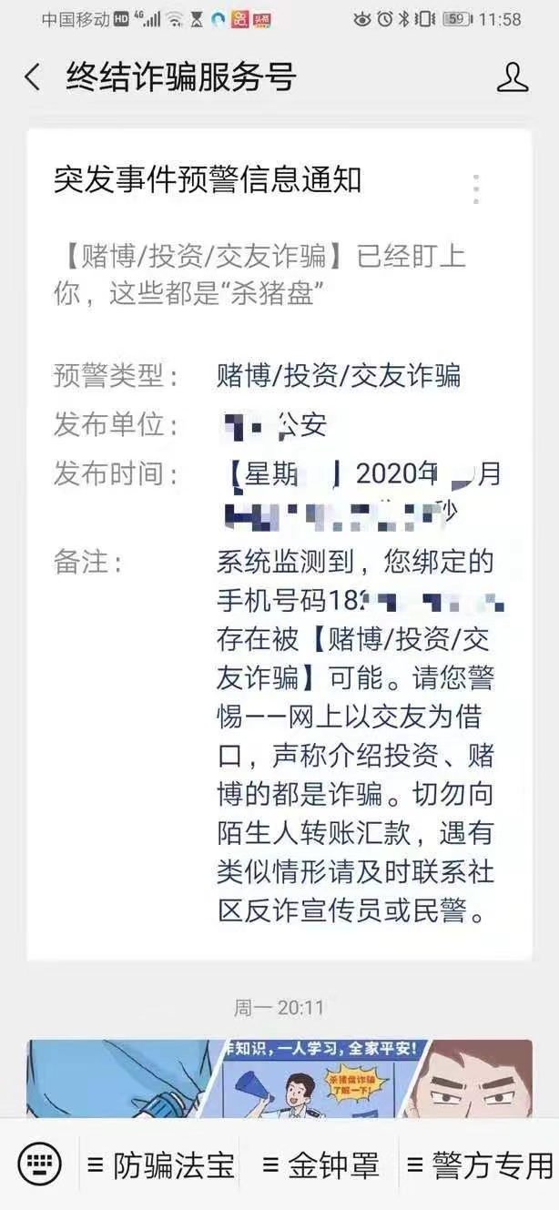郑东新区公安分局反诈中心负责人告诉大河网记者:“金钟罩”反诈平台依托于微信公众号系统,利用其自身强大的数据分析研判能力,能够快速地甄别疑似电信诈骗犯罪分子的来电和信息,并迅速采取有针对性的防范和预警措施。