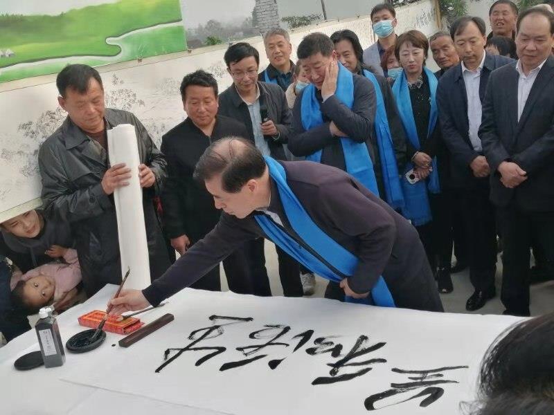 考察团一行走进荆山村时,村民们载歌载舞夹道欢迎,身穿民族服饰的蒙古族小朋友向远道而来的客人献上了哈达。考察团成员、内蒙古锡林郭勒盟政协主席斯琴毕力格向荆山村的蒙古族同胞表示问候和祝福。随后,王中和、斯琴毕力格挥毫运笔,分别用汉文和蒙文写下了“生活和美”“相隔万里山,血脉永相连”的墨宝,表达了对这支南迁蒙古族同胞的真情寄望和美好祝愿。内蒙古自治区政协委员、内蒙古师范大学美术学院院长陈晗晟现场作画,创作了以草原为背景的水墨写意图画,博得现场人员的热烈掌声。