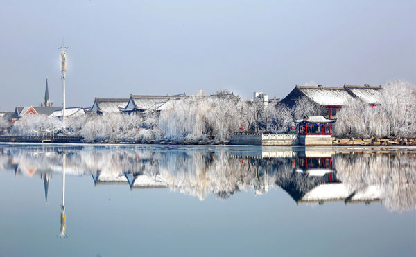 冬日的聊城市东昌湖,宛如仙境朱玉东摄半月谈记者陈灏泰山东峙,黄河西邻,岳色涛声,凭栏把酒无限好;层台射书,微乡明志,人杰地灵,登楼怀古有余馨——有着600多年历史的光岳楼上的这副楹联,道尽了“江北水城”...