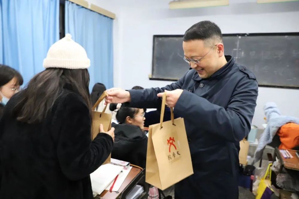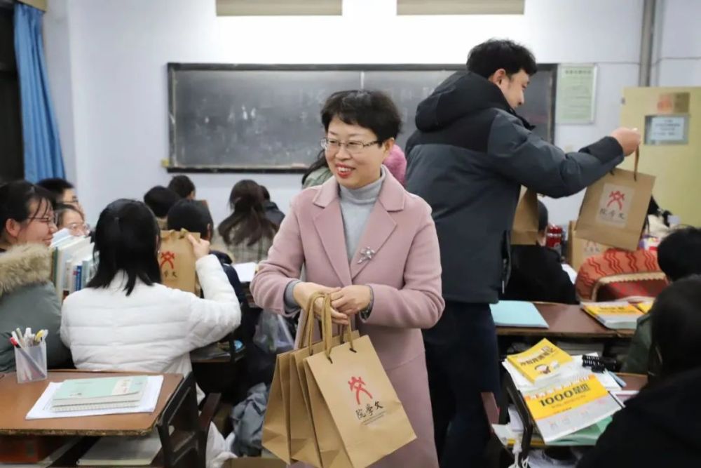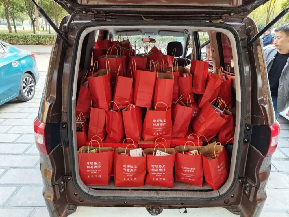 河南师范大学各个学院开展慰问考研学子活动,相关院系负责人到考研自习室为备考学生发放慰问品,为他们加油打气,让他们在师大感受到家庭般的温暖,在踽踽独行中获得坚强的支撑。据了解,有的学院精心策划,每一份礼品代表着一份寓意,牛奶代表着信心十足、“牛”气冲天;优酸乳代表稳扎稳打、“优”条不紊;桔子代表着胸有成竹、“桔”重若轻;蛋糕代表着稳操胜券、“糕”枕无忧;苹果代表着考试顺利、“苹”安上岸;奶茶代表着全都考上、“茶”你不行;棒棒糖代表高分通过、“棒”上有名;果冻代表着金榜题名、“果”然有你…