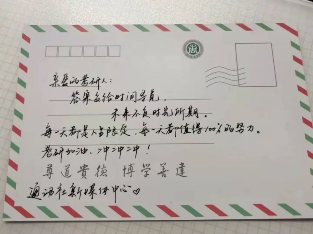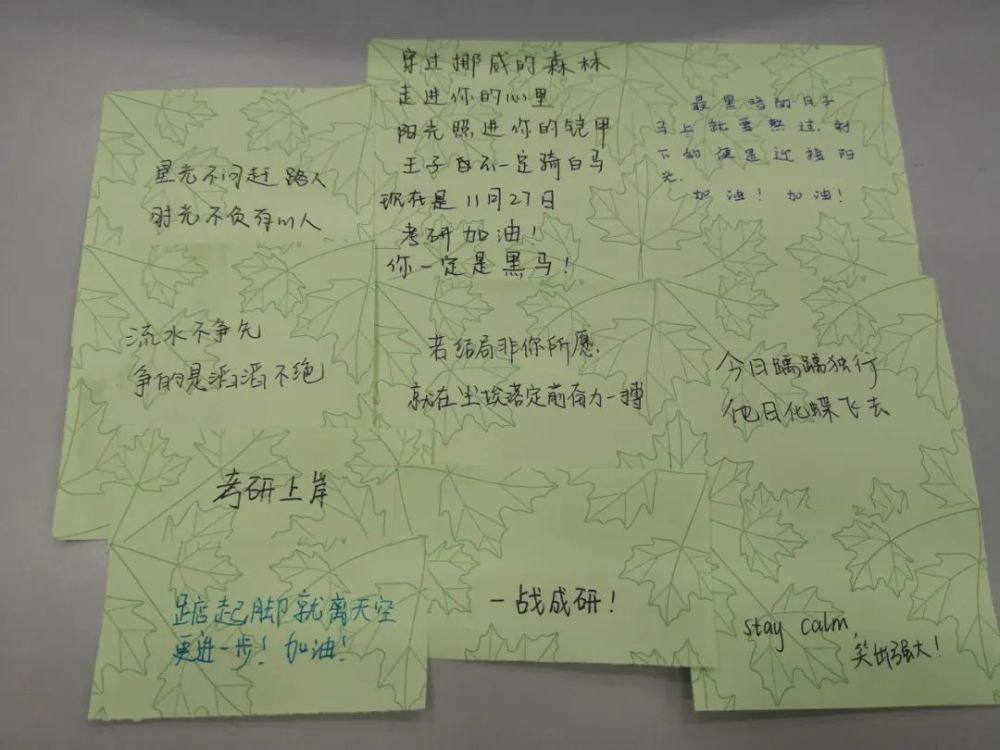 考研是一条注定孤独的道路,但我们将一直站在你们身后,为你们奋力呐喊、加油助力。这个11月,为缓解考研学生的焦虑与压力,学校为考研学子寄出了糖果与祝福,希望给大家带来“研”路的好运,愿大家的努力都终有所获。距离考研初试已不足一个月,在剩下的备考的日子里,不去想是否能够成功,既然选择了远方,便只顾风雨兼程;也不去想身后是否会有寒风冷雨袭来,既然目标是地平线,留给世界的只能背影。