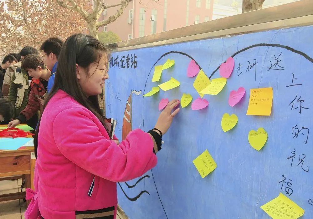 国土与旅游学院学弟学妹用便利贴为学长学姐加油鼓劲