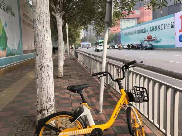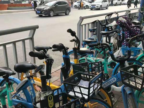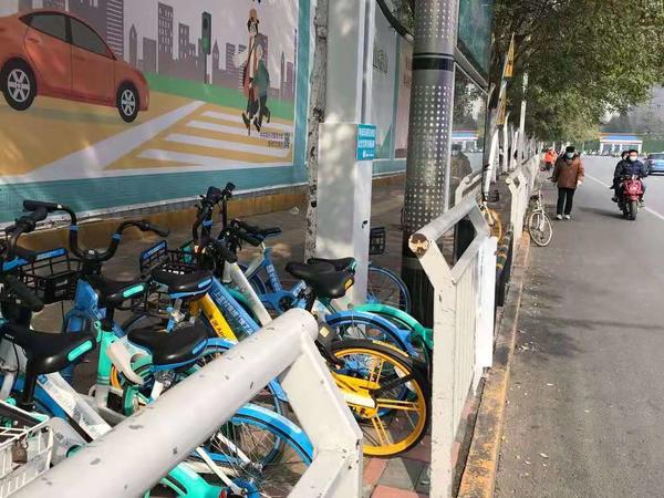 郑州市民主路西侧,几百米长的人行通道被长长的护栏围着,只开了一个一米多宽的口子,供自行车和电动车通行、在通道上停放。而个别人为了方便,直接将共享电车、电动车停在这个口子上,将仅有的入口堵死,后面骑车来停放的人根本进不去,十分不便。