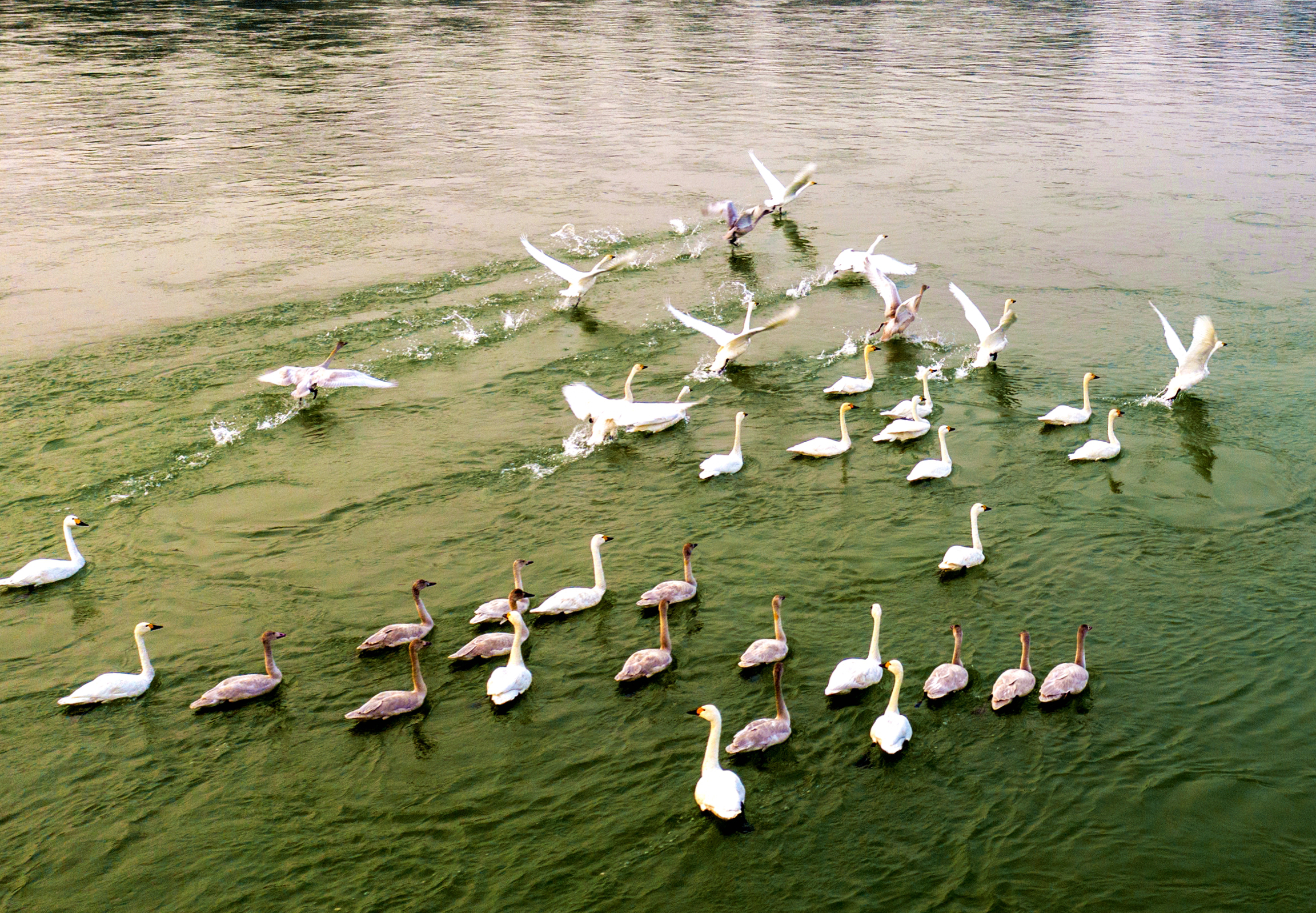 连日来,在孟津黄河湿地自然保护区内,成群的小天鹅陆续来到这里歇脚、觅食。在完成短暂的休整后,这些小天鹅再次起飞,赶往长江流域内的越冬地。从10月底开始到11月下旬,今年已观测到大约600多只小天鹅过境孟津黄河湿地,数量相比往年有了明显增多。