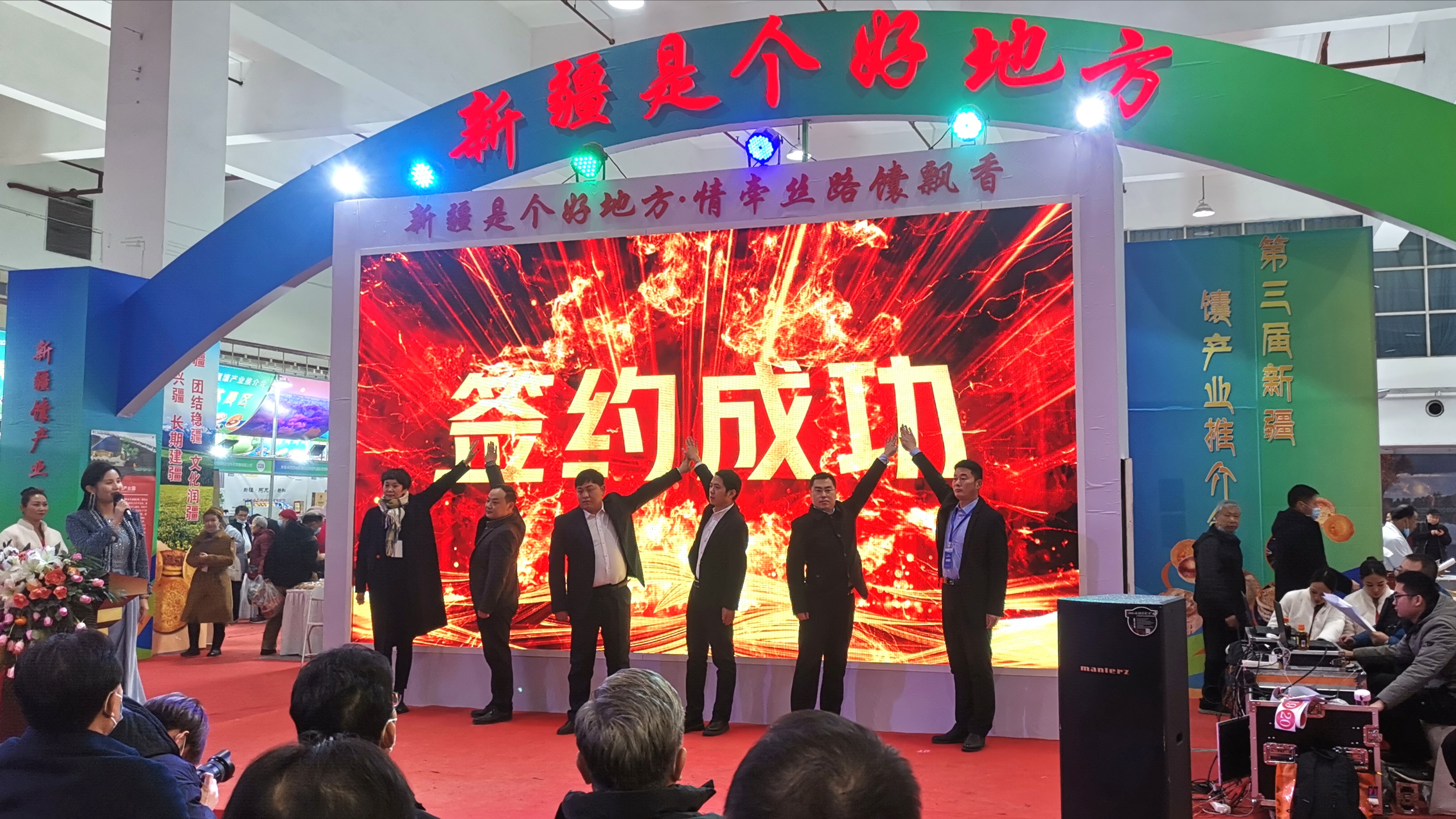 签约仪式结束后,现场还举行了专场推介活动,再次展示推介新疆的馕产业系列产品,让大家更加了解大美新疆、了解新疆的美食。哈密市、阿克苏馕产业园、霍尔果斯馕产业园、乌鲁木齐馕产业园、于田县美玉香馕公司、昌吉州等分别进行了推介,吸引不少市民驻足观看。
