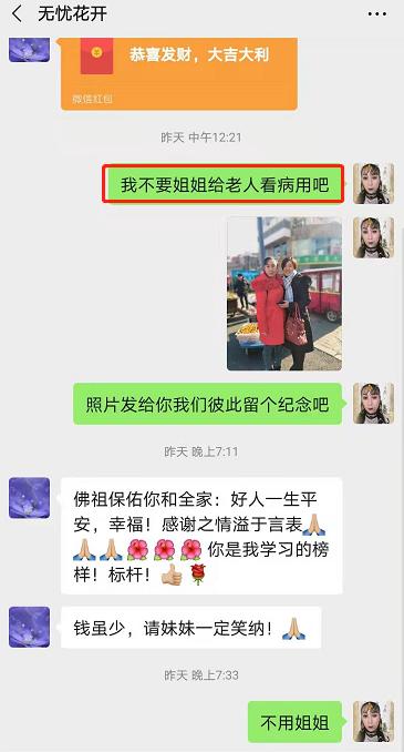 当失主张大姐见到周喜娇两口子时,双腿直哆嗦根本都站不稳,她流着眼泪想给周喜娇两口子跪下,装着一万余元现金和医保卡的包终于物归原主,张大姐激动地抱住周喜娇说:“实在是太感谢了,这1万多块钱是给我妈做手术的救命钱,刚从银行取出来,打算回家先给我妈做完饭,再送去医院。当时包就放在自己车上,怎么弄丢的根本不知道,到家门口才发现包不见了,快吓死我了。”据张大姐称自己今年45岁,妈妈在第一人民医院住院。因为还要回医院照顾自己生病的母亲,顾不上请周喜娇两口子吃饭,便拿出一些现金想送给周喜娇两口子表示感谢,被周喜娇婉拒了,“认识就是缘分,不用这么客气。”随后二人加了微信,姚念红(周喜娇丈夫)给她们两个拍了几张照片作为一次特殊的留念。