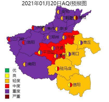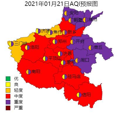 根据预报,安阳、焦作、濮阳将出现3天重度污染过程和1天中或重度污染;洛阳、三门峡、南阳和济源将出现3天至5天重度污染过程;郑州、开封、平顶山、鹤壁、新乡、许昌和漯河将可能出现3天至4天中度或重度污染。