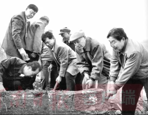 1998年11月1日,郑永和、穆青、吴金印、陈大斌一起在尖山洼参加修路
