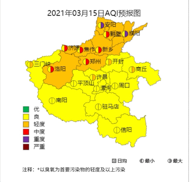 河南情况如何呢?根据河南省气象台发布的天气预报,受冷空气影响,15日下午到16日白天,全省东北风4级~5级,阵风7级左右,北中部有扬沙或浮尘天气。大河网记者从河南省生态环境监测中心获悉,今日早间至上午,豫北有轻度污染时段;其他地区为良。午后,受较强冷空气影响,全省转东北风,北中部、西部地区有短时轻中度污染时段,安阳、濮阳等省界城市有短时重度污染风险。全省风力4到5级,各地需加强扬尘控制。预计日均:北部、西部为轻度污染或良,其他地区为良。首要污染物为PM2.5或PM10。