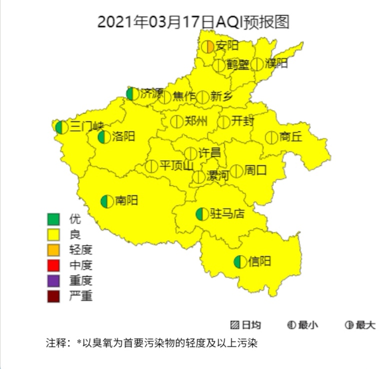 今日10时全省空气质量指数情况,鹤壁、平顶山、安阳达中度污染,新乡、洛阳、焦作、三门峡、濮阳为轻度污染。