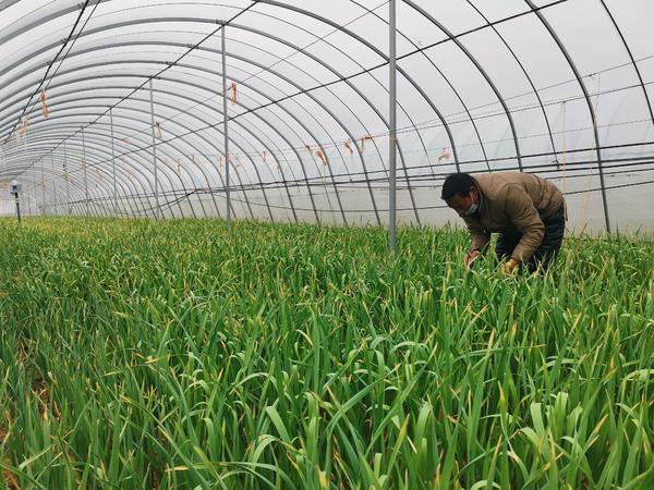 没经验,他一口气种了30个大棚的蒜苗,结果滞销了