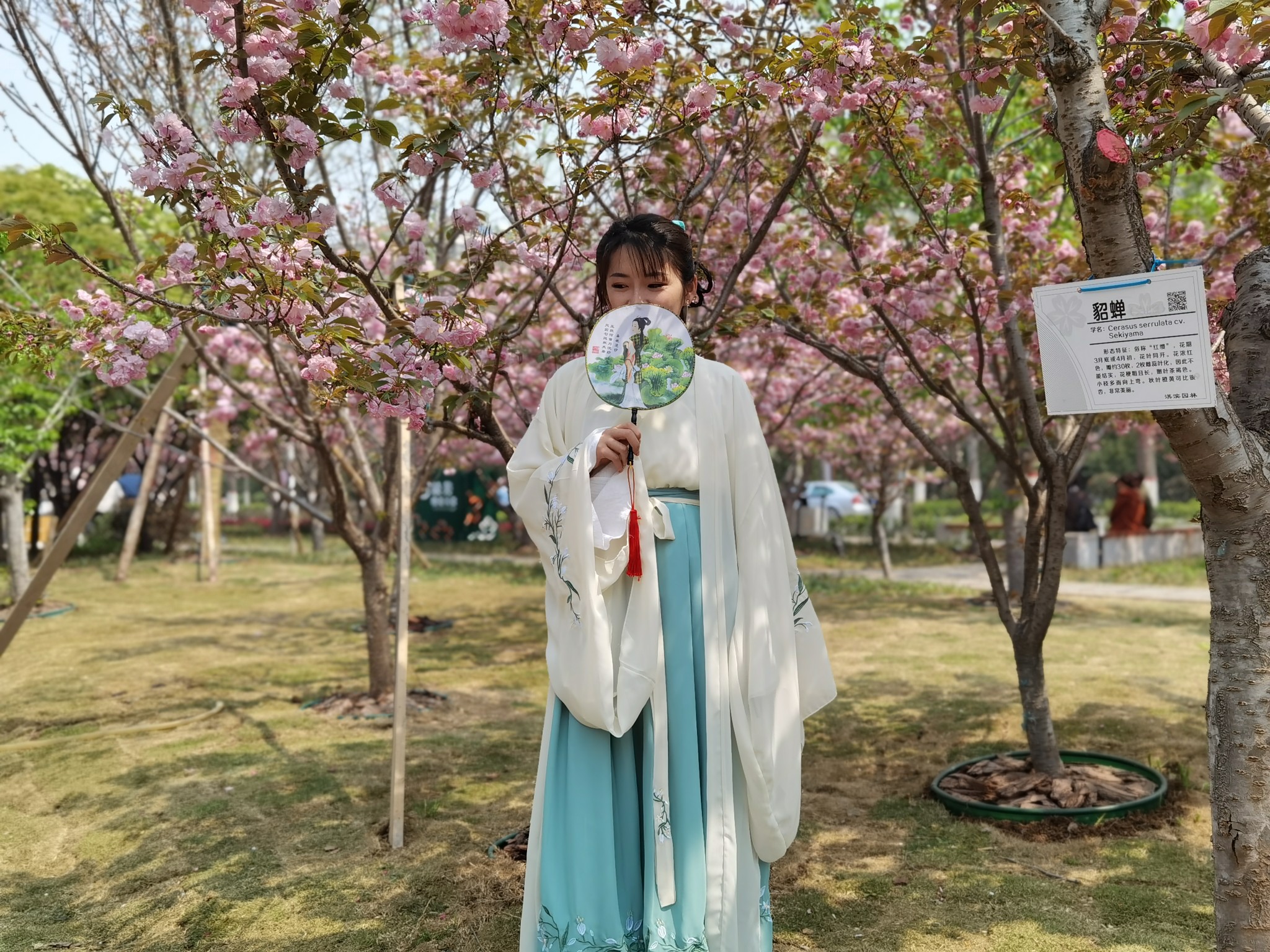 一名古装女孩沉醉在“貂蝉”樱花树下。