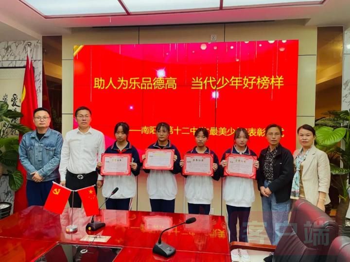 5月5日,市十二中决定授予乔雨悦、李婧菡、张茹雪、郭盼四位同学弘扬雷锋精神、助人为乐“最美少年”荣誉称号,并号召全校学生向她们学习。