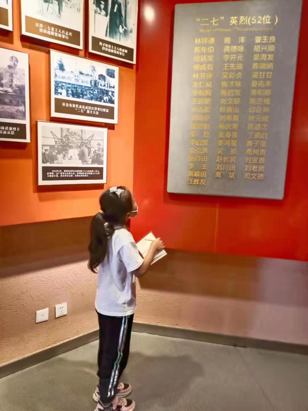 在每层展馆的门口,都有刻着历史简介的石碑。郑州二七纪念塔建于1971年,是为纪念京汉铁路工人大罢工而修建的纪念性建筑物;1926年10月初,军阀吴佩孚下令逮捕郑州分工会委员长汪胜友、工务处工人总代表司文德,并于15日将二人杀害在郑州的长春桥,二七纪念塔之所以设计成连体双塔结构,就是为了纪念这两位烈士......讲解员老师详细地介绍了“二七大罢工”事件始末。