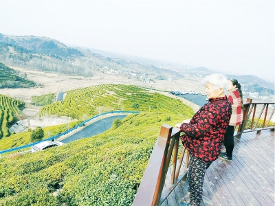 河南省罗山县周党镇,几名村民来到茶山上眺望,这里计划修建高速服务区。 □大河报·豫视频记者王新昌文图 2月21日下午,“奋进新征程建功新时代”主题采访团记者来到河南省信阳市罗山县调查走访。 在豫鄂...