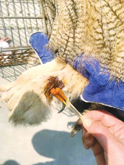 他说,雕鸮主要吃老鼠,对林业、牧业、农业有保护作用。这只雕鸮的伤情不重,已经进行了包扎、消毒等处理。不过,雕鸮有很强的自愈能力,其健康状况良好,他们将在三四天内将它放归大自然。