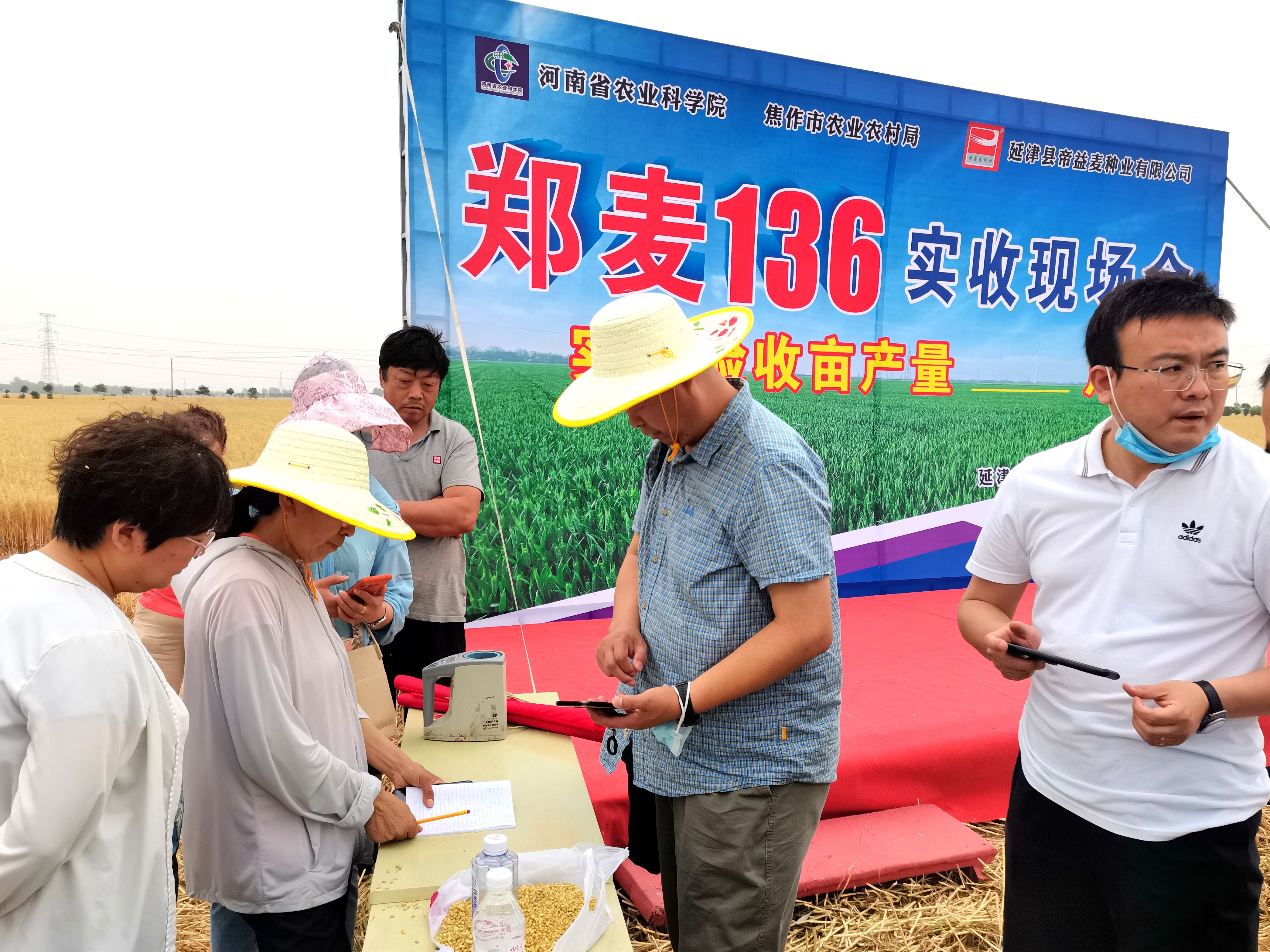 当天,焦作市农业农村局邀请相关专家成立验收组,对优质小麦品种郑麦136进行实地考察和现场实打实收。