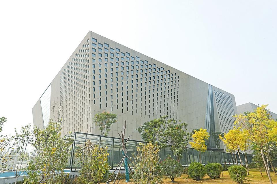 宋建国说,新馆建筑设计理念新颖,设计思路立足中原艺术共有的形态要素,选取中华艺术的“最大公约数”——“斗”形作为建筑母体,连接郑州的历史与现在,以统一整体的现代建筑语汇再现华夏文明的神韵。建筑装饰采用浅灰色的仿石材挂板,硬朗沉稳的质感不失中原大地的人文气质,结合石窟元素的参数化表皮,虚实相间,若隐若现,浑然一体。
