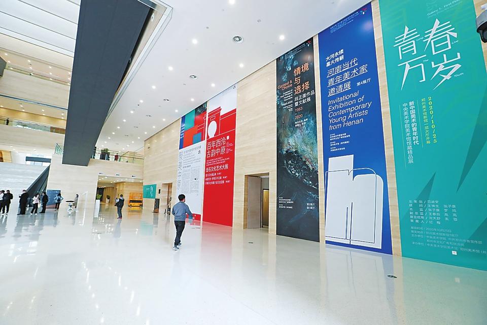 为给广大市民带来精彩的开馆“首秀”,郑州美术馆策划了一系列展览、学术研讨及公众教育推广活动。其中,“聚美中原——郑州美术馆新馆开馆系列展”共包含6个展项,分别是:“西泠印社社藏精品展”“闲庭信步——李刚田书法展”“河南印社珍藏古玺印封泥展”“情境与选择——段正渠作品暨文献展:1983-2020”“大河永续·星火传薪——河南当代青年美术家邀请展”“青春万岁:新中国美术的青年时代——中央美术学院馆馆藏精品展”。