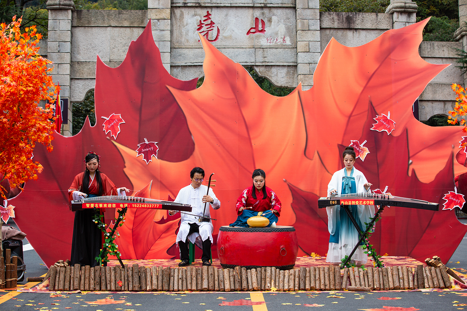古风舞红叶,诗画入尧山,管弦丝竹、国风古韵;唐风舞蹈、仙乐飘飘;网红飞天,美轮美奂……引来游客驻足观看,掌声不断。