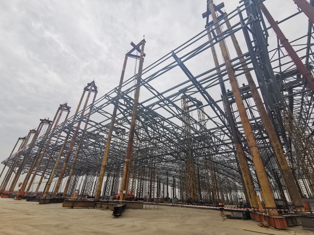 短短36天,完成了提升第三区约9900余条钢管的拼装、17000余条焊缝的焊接,且焊缝检测合格率高达99.5%,优质高效地完成了各项施工工序,为工程赢得了宝贵时间。伴随着郑州南站主站房结构顺利封顶,下一阶段,站房工程金属屋面和外幕墙施工将大面积展开,郑州最大的“毛坯房”也将逐步转入“装修”阶段。