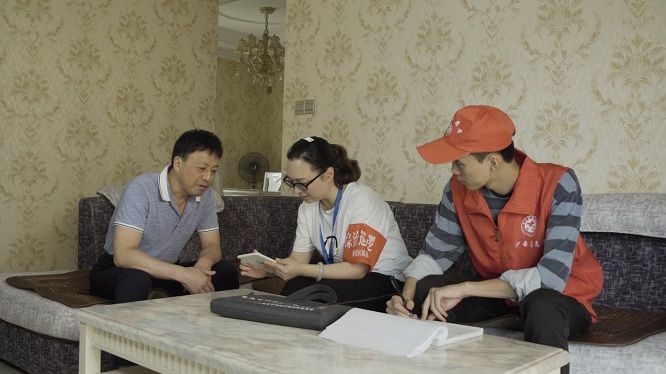 铜梁区东城街道长坡社区平安员走访辖区内网格,帮助居民登记疑难问题诉求