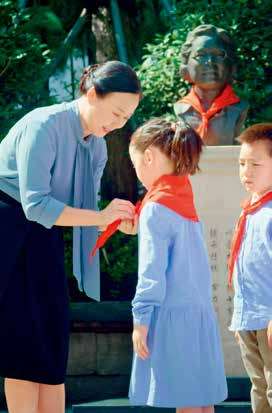 杨浪浪为孩子佩戴红领巾 李辉均 摄