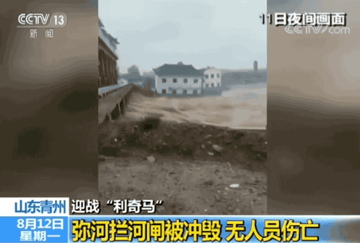 山东青州市弥河镇的弥河拦河闸昨天(11日)16时被冲毁,现场未发生人员伤亡。