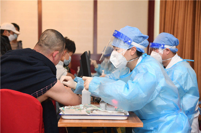 北京市海淀区北太平庄街道临时新冠疫苗接种点第二剂新冠疫苗接种现场(1月31日摄)。新华社记者 任超 摄