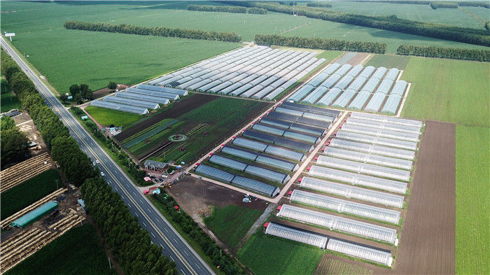 带动脱贫户就业的黑龙江省肇东市黎明镇甜嫂创意休闲农业园区全貌(无人机照片,2020年7月6日摄)。新华社记者 王建威 摄