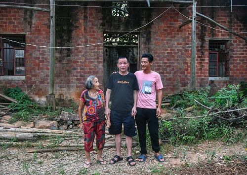 2020年8月7日,张玉环(中)和儿子与母亲在自己入狱前的住处前留影。新华社记者 胡晨欢 摄
