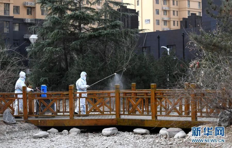 自1月10日起,河北省石家庄市裕华区天海誉天下小区的风险等级由低风险被调整为中风险。1月12日,工作人员在小区内消杀。新华社记者 王晓 摄