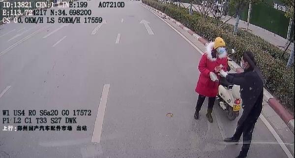 骑电动车女子被公交车追赶拦停后 她不但不生气还给对方百元现金鞠躬感谢?